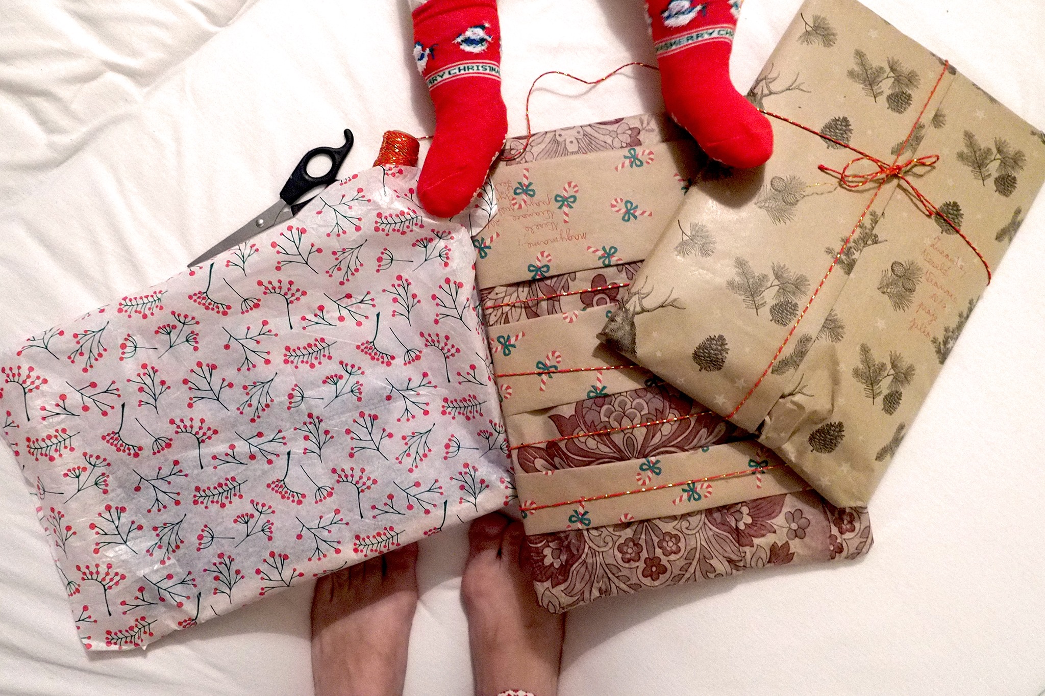 Balím darčeky a moja dcérka mi ťahá papier, špagát, lepiacu pásku, zaujmú ju aj nožnice. Veľmi sa teším a užívam si to.